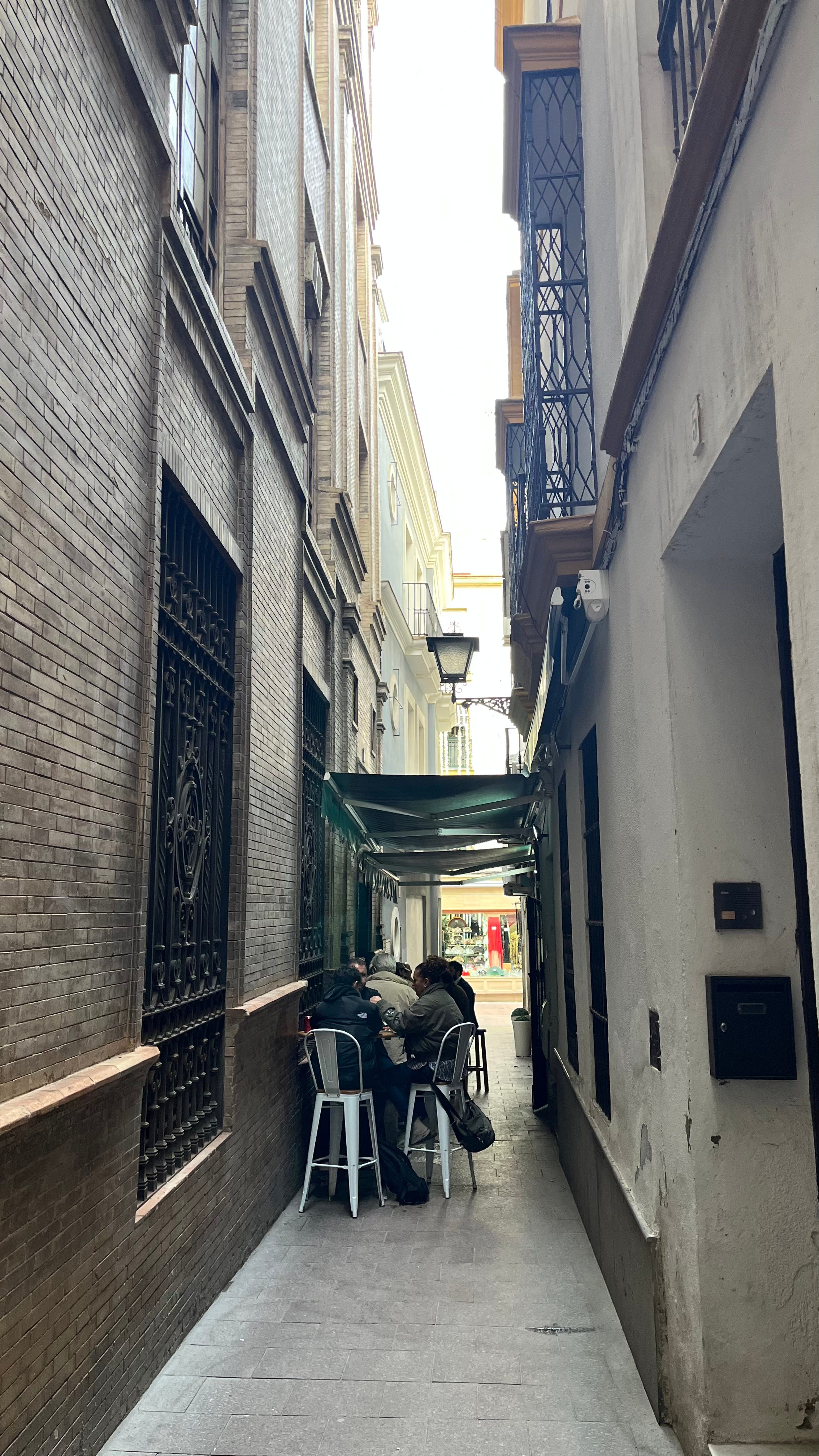 It was in this spirit that he took the shortcut off Calle Cuna. Past the restaurant patio, the art gallery he had yet to visit and the barber on the corner, up the ramp between the flat complex. Through gates locked at night he navigated the small alley that feeds onto Seville’s main shopping promenade.
